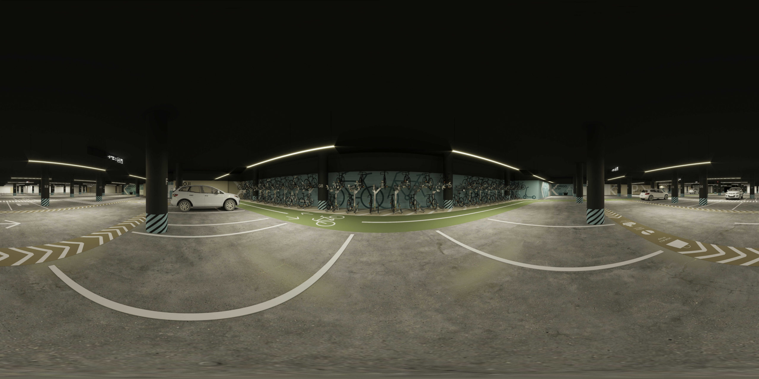 270 auto un 100 velo novietnes. Pazemes autostāvvietā pieejamas arī elektro auto uzlādes stacijas.